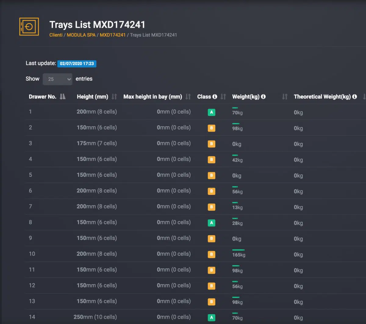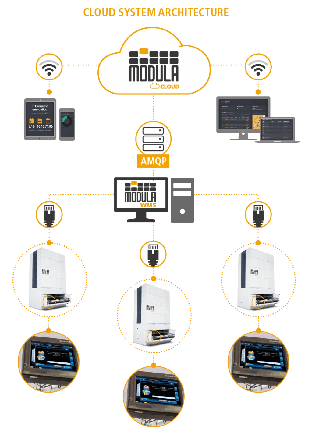 Modula Cloud是一个远程管理、支持和分析平台,可从您所有的自动仓储和管理系统中收集数据,无论它们实际位于何处。Modula Cloud是系统内置的并始终在线,在一个易于浏览的在线门户数据库中获取所有数据,用户可以从世界任何地方的使用任何设备终端安全地监测和管理操作。